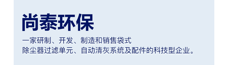 上海尚泰環(huán)保配件有限公司創(chuàng)立于2006年5月,是一家研制、開發(fā)、制造和銷售袋式除塵器過濾單元、自動(dòng)清灰系統(tǒng)及配件的科技型企業(yè)。